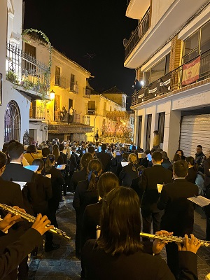Durante la Semana Santa, asumimos un papel especial, acompañando las procesiones y actos religiosos con nuestras interpretaciones emotivas y solemnes. A través de nuestras melodías conmovedoras, creamos momentos de conexión y reflexión, añadiendo una atmósfera única a esta celebración tan significativa.